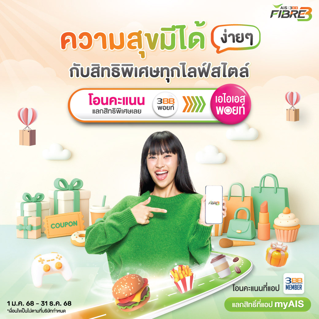 ลูกค้า 3BB FIBRE3 โอนคะแนนสะสม 3BB points เป็น AIS Points พร้อมรับสิทธิพิเศษที่มากกว่าง่ายๆ ผ่าน 3BB Member Application