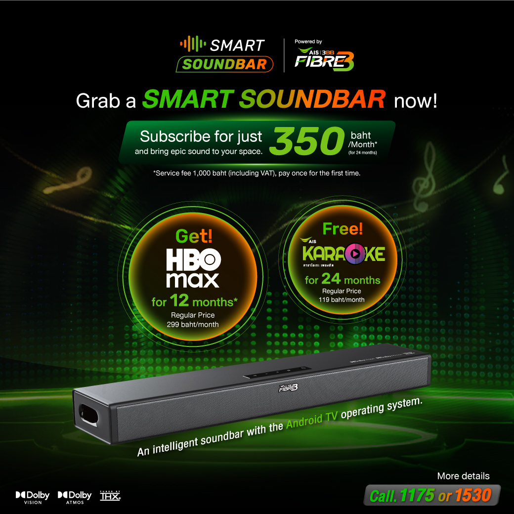 บริการ SMART SOUNDBAR ใน 350 บาท/เดือน* ฟรี! ความบันเทิงจาก MAX และ AIS Karaoke