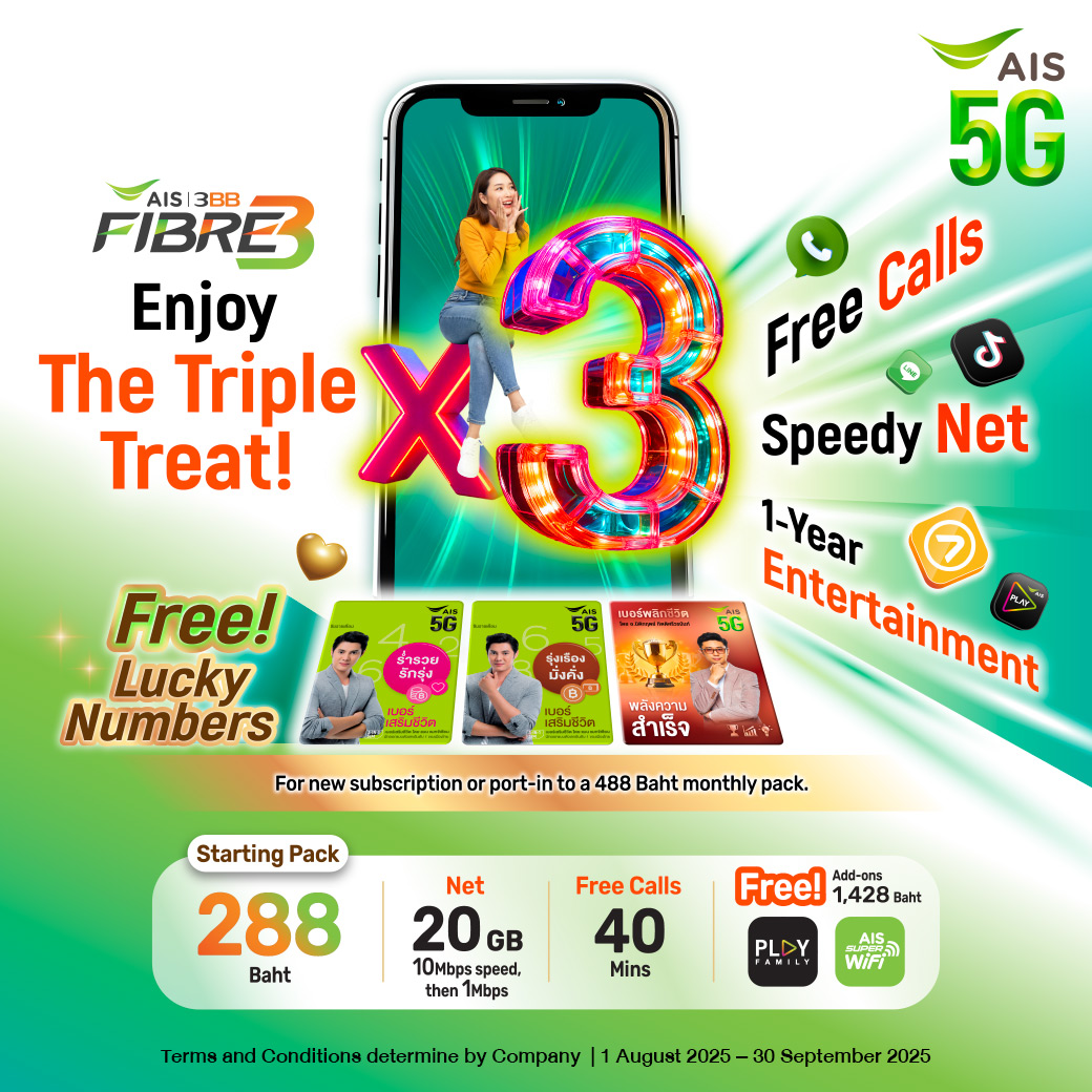 Exclusive Packages for AIS 3BB Fibre3 Customers Only. Activate a new SIM or port-in for the best-value package, packed with top content!!
