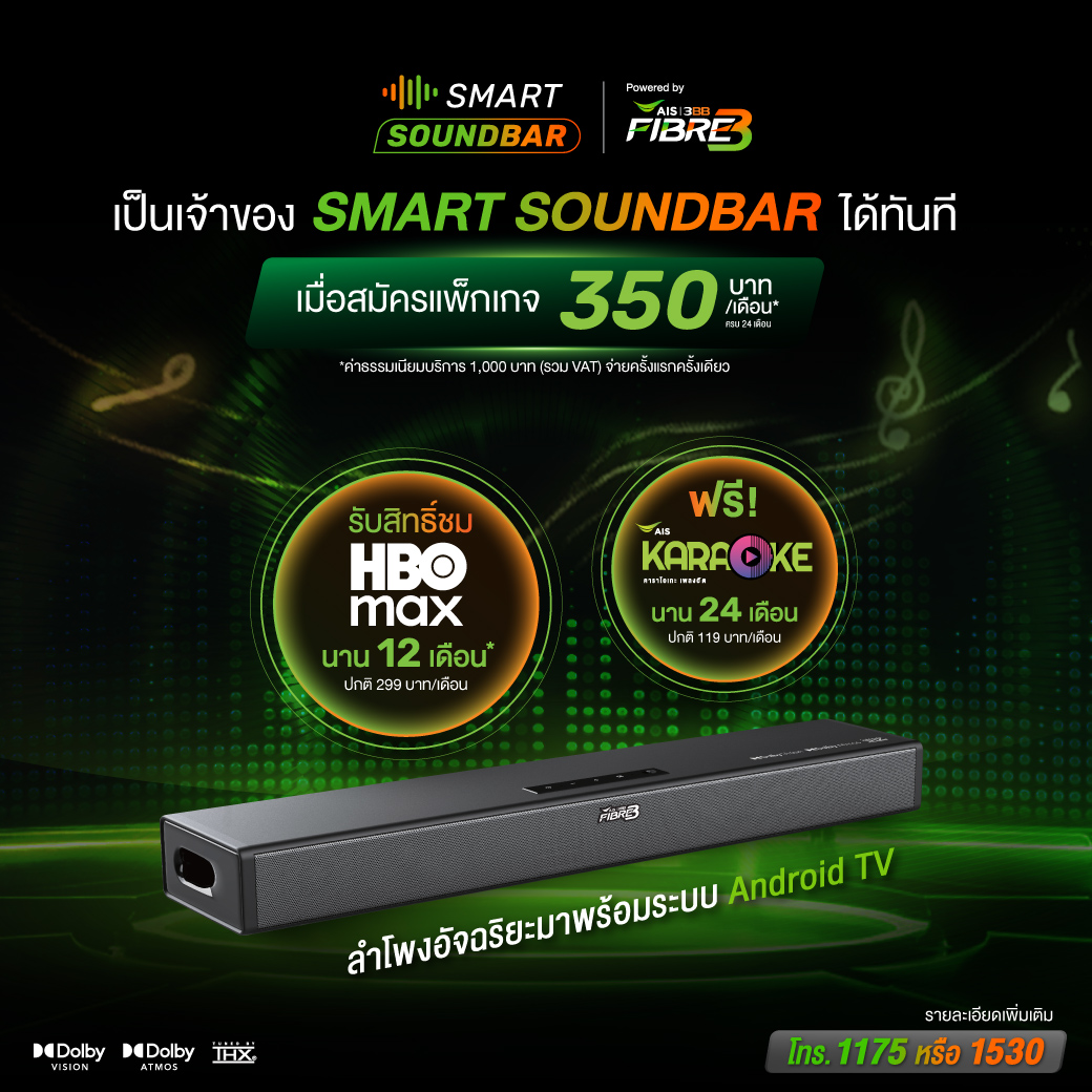 บริการ SMART SOUNDBAR ใน 350 บาท/เดือน* ฟรี! ความบันเทิงจาก MAX และ AIS Karaoke