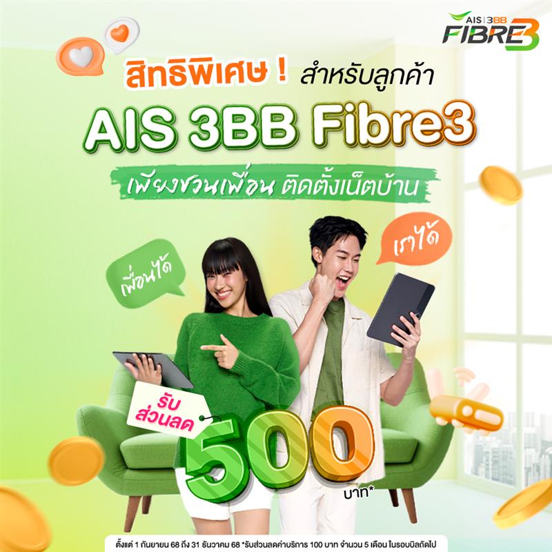 แพ็กเกจพิเศษเฉพาะลูกค้า AIS 3BB Fibre3 เท่านั้น เพียงเปิดซิมใหม่ หรือย้ายค่าย ได้แพ็กเกจสุดคุ้มจัดเต็ม พร้อมคอนเทนต์ดัง!!
