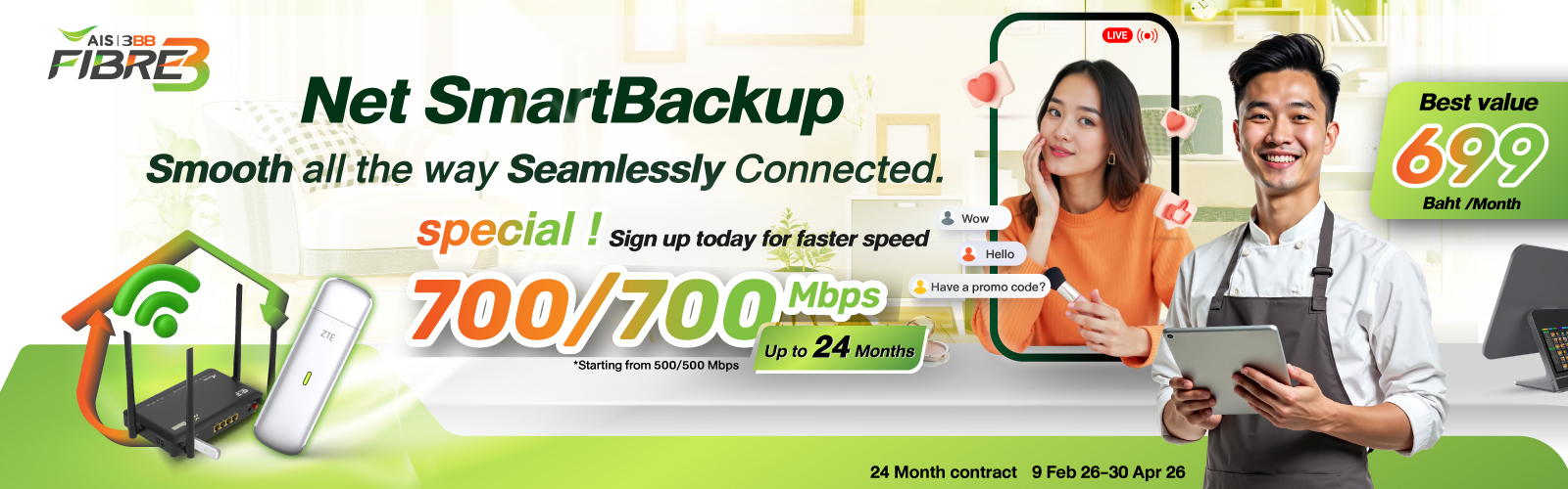 Special AIS Fibre entry fee is only 800 Baht (from 2,000 Baht.)