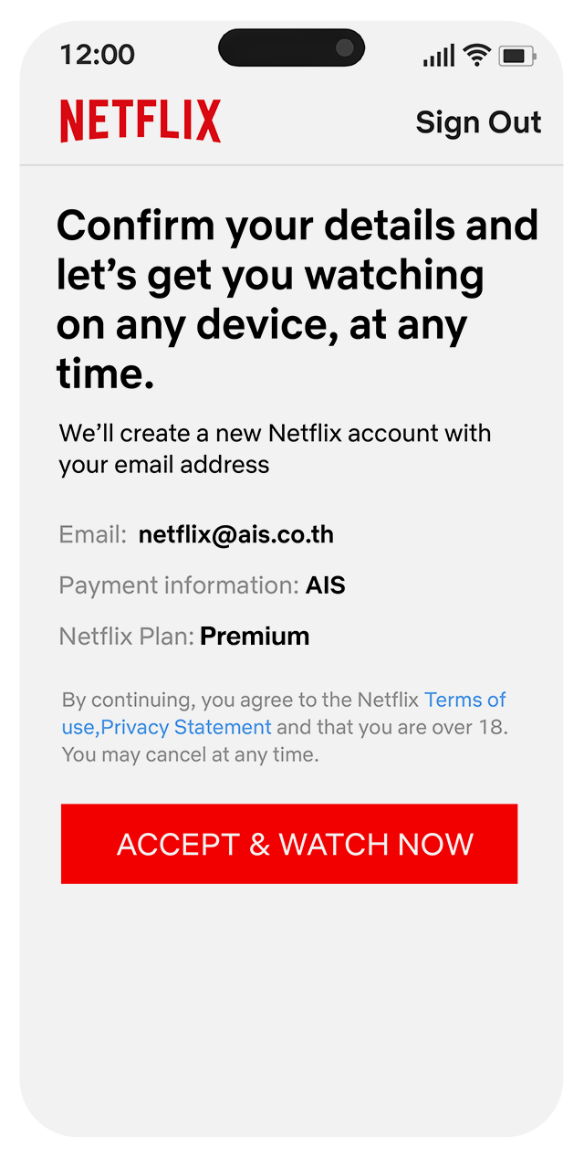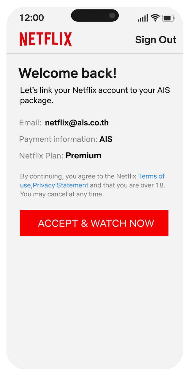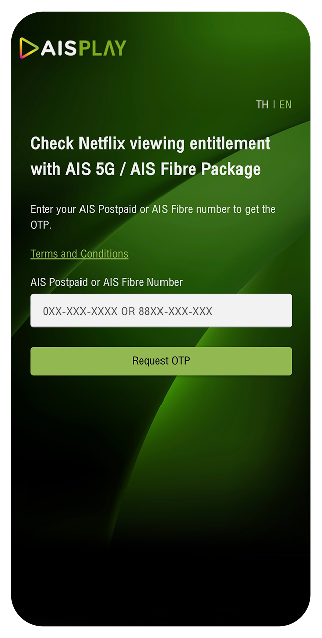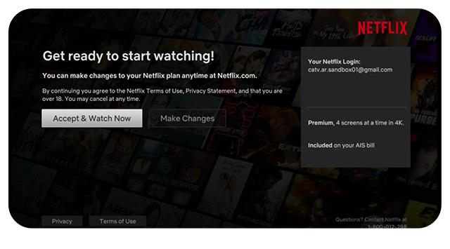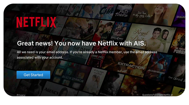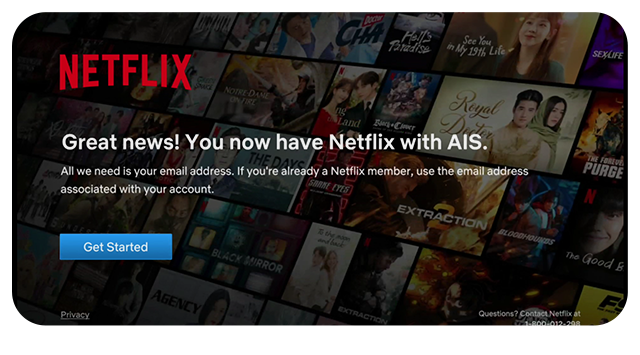 The privilege is for AIS postpaid customers registered or identified as individual users only. By using this service provided by AIS Fibre and Netflix, the customer is deemed to have agreed that their phone number information is forwarded to Netflix.