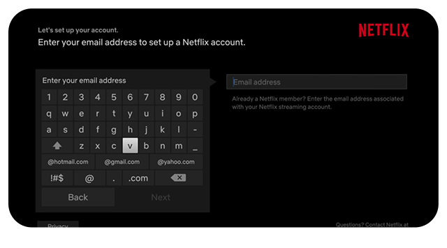 Enter your email address to set up a Netflix account