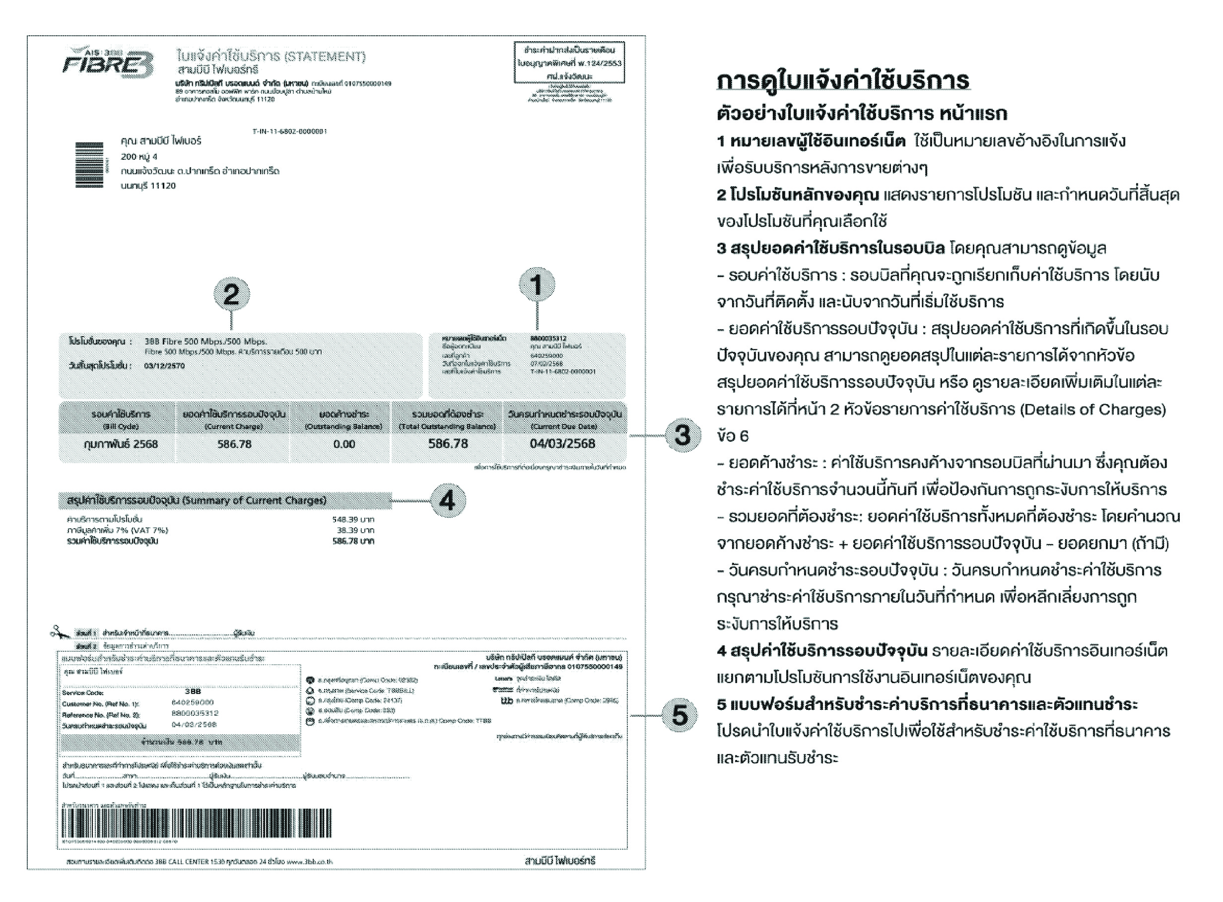 ตัวอย่างใบแจ้งค่าใช้บริการ หน้า 1