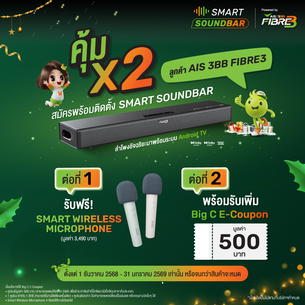 บริการ SMART SOUNDBAR ใน 350 บาท/เดือน* ฟรี! ความบันเทิงจาก MAX และ AIS Karaoke